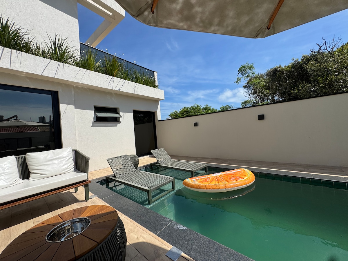 Welcome to the best penthouse in Bombinhas. Experience truly amazing moments while enjoying a breathtaking view!➢ Enjoy a large terrace with a Jacuzzi!➢ Get to the wonderful Bombinhas beach in less than 3 minutes➢ On the central avenue, close to everything!!➢ Count on a parking space available to you! (medium space)Did you like it? Add to your wishlist by clicking ❤ on the upper right-hand corner.