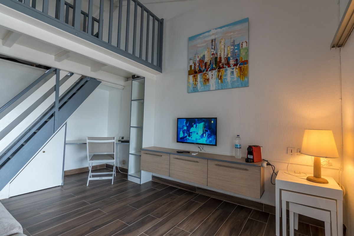 F1 apartment of 33m² classified 3★. 1 closed air-conditioned bedroom with balcony. 1 living room equipped with a sofa bed that can accommodate 2 additional people. Located in the heart of the city, 2 steps from the ferry terminal, the cruise terminal, the Place de la Victoire and the spice market. This apartment is fully equipped for your comfort. High-speed fiber internet available for teleworkers. You will appreciate the calm and sweetness of the evenings on the furnished terrace.