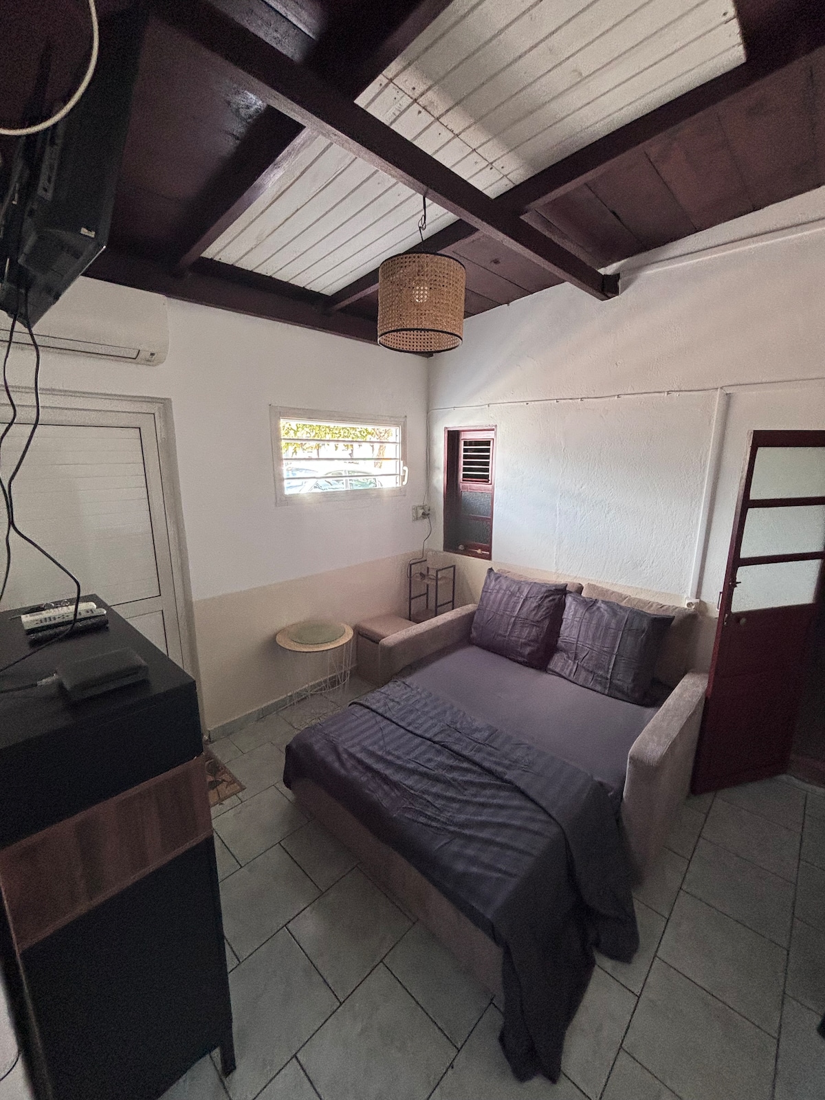 Studio meublé mitoyen d’un maison individuelle Cuisine, salle de bain et séjour disposant d’un couchage : canapé convertible et très confortable Cuisine aménagée fonctionnelle. Situé à pointe à pitre , près d’un port de pêche idéal pour acheter du poissons frais , épicerie et supermarchés de proximité À 5mn du centre ville Vous avez la possibilité de réserver avec une formule brunch comprenant des spécialités antillaises