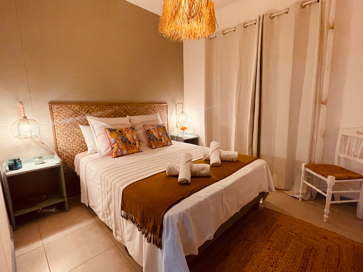 Cette maison, nous l'adorons! Une petite case centenaire en bois de fer... Un jardin luxuriant débordant de plantes tropicales... Deux varangues et une terrasse avec brasero... Un aménagement soigné... À côté, le Cap Méchant pour des sunsets fabuleux, et l'incroyable piscine littorale du Baril... Deux salles de bains à ciel ouvert, avec douche ou baignoire... et le soir, si vous le souhaitez, les repas succulents de Nathalie livrés à votre table... Vous serez heureux chez Mamie Méchant!