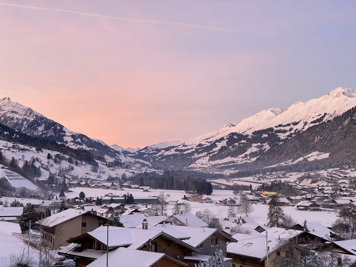 位于Château-d'Oex的温馨公寓,带共用泳池
