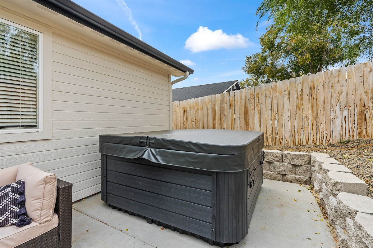 Hey traveler! Whether a wedding, getaway, or event brings you to Nampa, this modern home prioritizes cleanliness and comfort. From 6 dreamy beds, a soothing hot tub and games, to a full kitchen and spacious yard, it's a house of total relaxation and fun. At this centrally-located, immaculate house, you're close to shopping, dining and the Ford Idaho Center, Mint Barrel Barn, and Still Water Hollow. Yet, in such a quiet neighborhood you'll be able to relax, sleep, and have a blast peacefully.