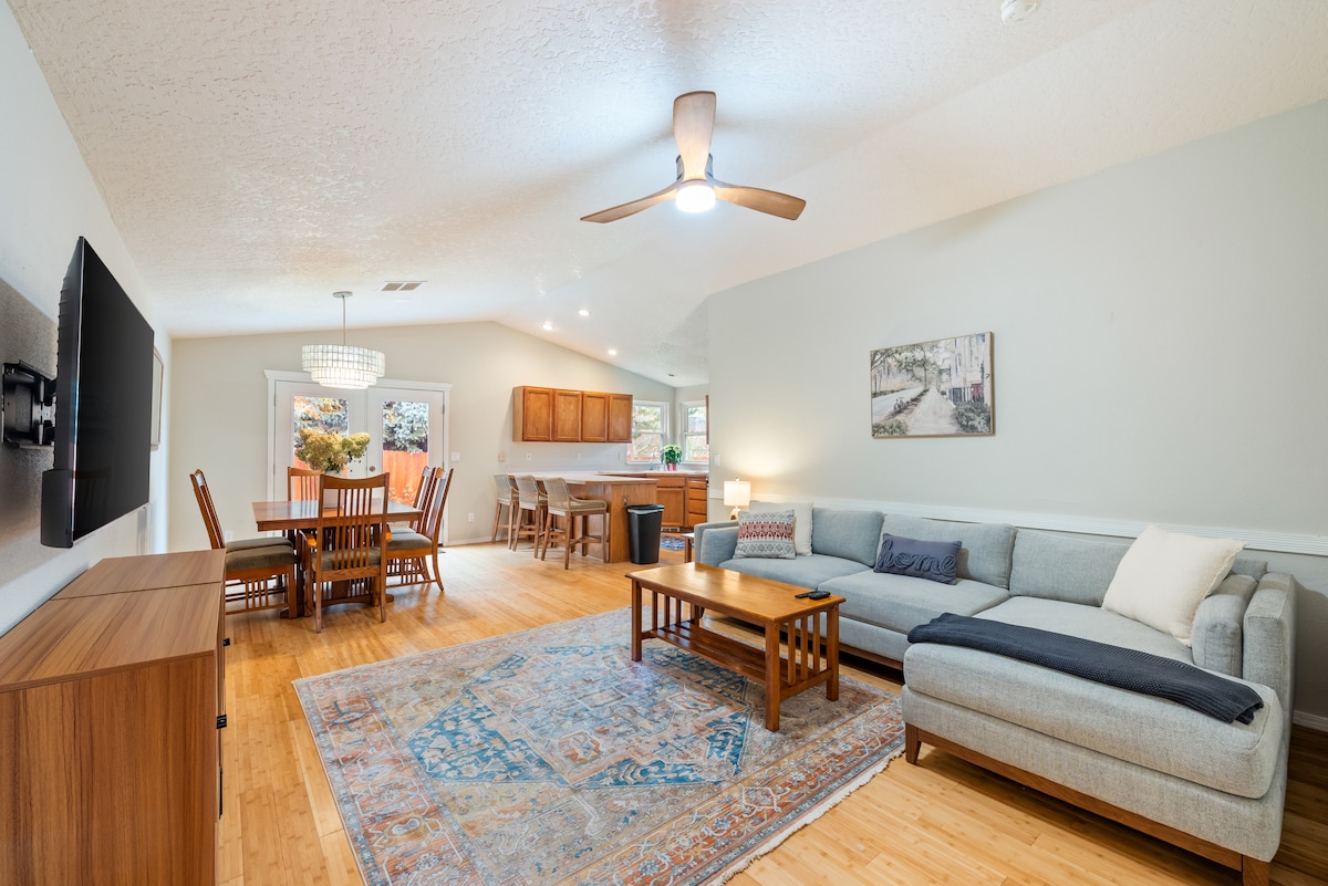 Inside this stylish home, is a comfy couch, king sleep # bed in the primary bedroom, and all the essentials you will need for a short stay. The Nampa Greenbelt Nature Trail is an easy walkable distance as well as Nampa Skate Park and just around the corner from this home, there is a community play and picnic area for your whole family to enjoy. This home is a five-minute drive to NNU, Deer Flat National Wildlife Refuge, Lake Lowell Reservoir, and RedHawk Public Golf Course, and Deer Flat Ranch.