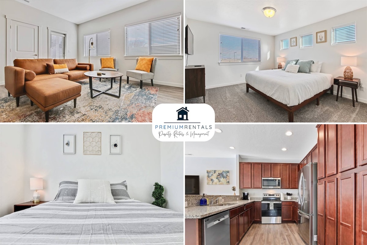 This Elegant two bedroom townhome is situated in a brand new fourplex. This brand new property has been carefully curated and furnished with travelers in mind. You have found the perfect place to relax and enjoy your vacation, with fluffy pillows, comfortable mattresses, and beautiful furnishings. Close to the Ford Idaho Center and shopping!