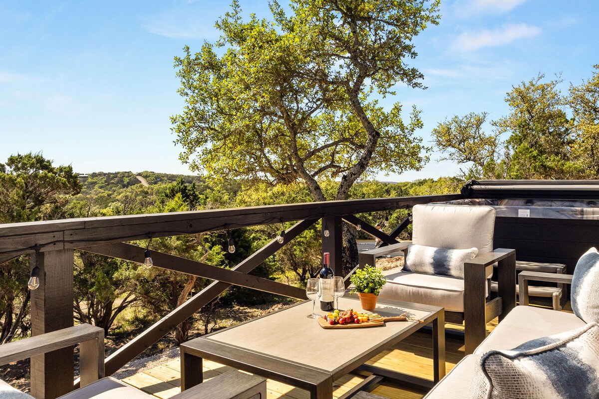 Want to feel as though you're staying in the mountains, but remain local to Texas? This is the spot for you. As you enter the property, you will drive up a hill that winds around a forestry of trees surrounding the property. At the top of the hill, you will be greeted by a modern home towering over the trees to provide an unforgettable view that overlooks rolling hills as far as you can see. It is truly a magical experience offering rest from the daily grind of normal life.