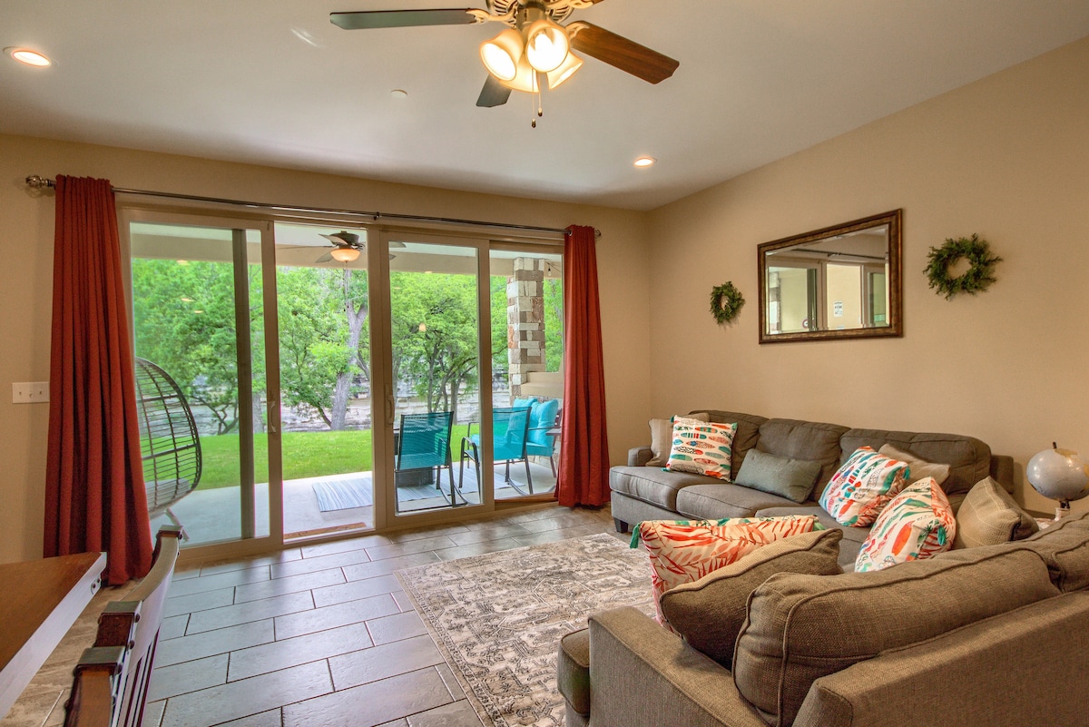 Relax. Recharge. Riverfront Bliss. Welcome to Oasis on the River — your serene escape on the banks of the beautiful Guadalupe River. This fully renovated 2-bedroom, 2-bath condo offers the perfect blend of comfort, style, and location for your next Texas getaway. Whether you're floating the river, exploring historic Gruene, or simply unwinding with a glass of wine on the balcony, your dream vacation starts here.