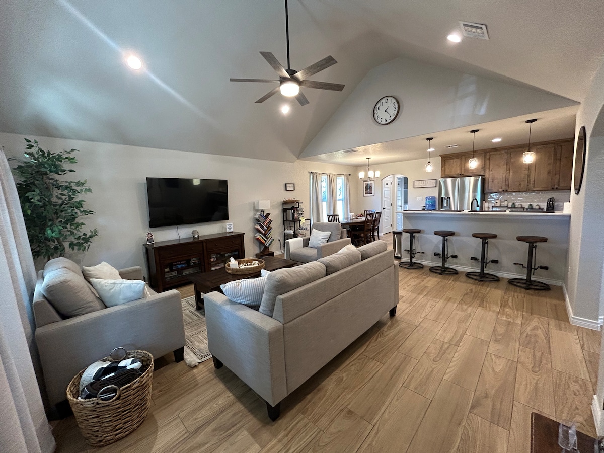 Discover Lola Hideaway a Texas Hill Country Tiny Home Vacation Rental. Dog-friendly, Modern Farmhouse style decor, open concept with a loft. Enjoy this prime location just a short drive from the serene Canyon Lake & Guadalupe River. Immerse yourself in the perfect blend of comfort & style, creating unforgettable moments amid the natural beauty of the Texas Hill Country with opportunities for boating, tubing, fishing & hiking. Book your stay to experience a unique escape in this charming cabin.