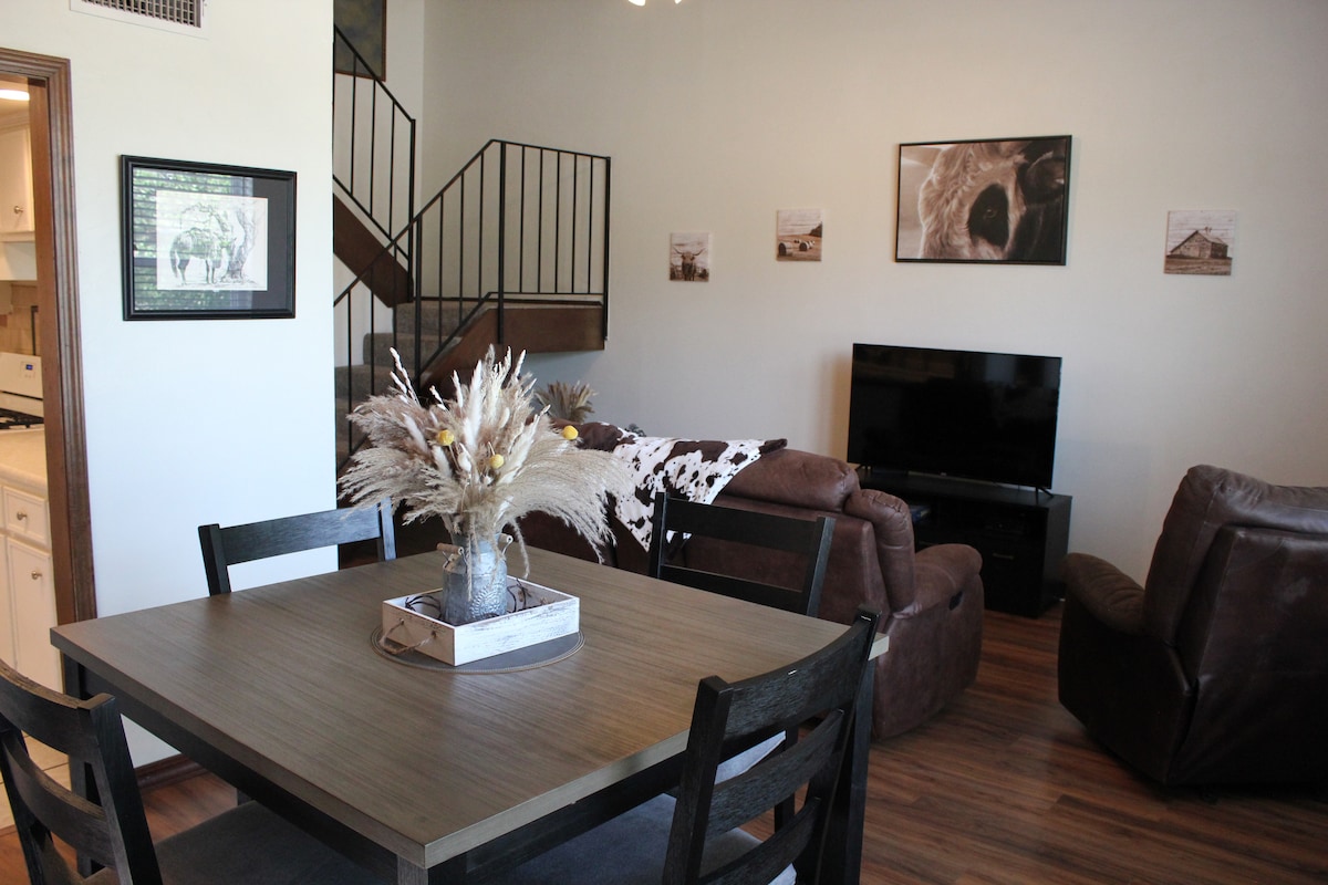 Enjoy a relaxing stay at The Canyon Barndominium. Minutes from downtown Canyon and West Texas A&M University. 15 miles to beautiful Palo Duro Canyon. Ample parking and covered patio. Our 2 bedroom 2 bath home with loft is clean and comfortable.1 King bed, 1 queen bed, 1 full bed and 3 twin bed.Fully stocked kitchen and bathrooms.TV and free WIFI. Around 1700 sq ft.Unfortunately we do NOT allow pets. Sorry. *stay includes access to living portion of barndominium only, shop portion excluded.