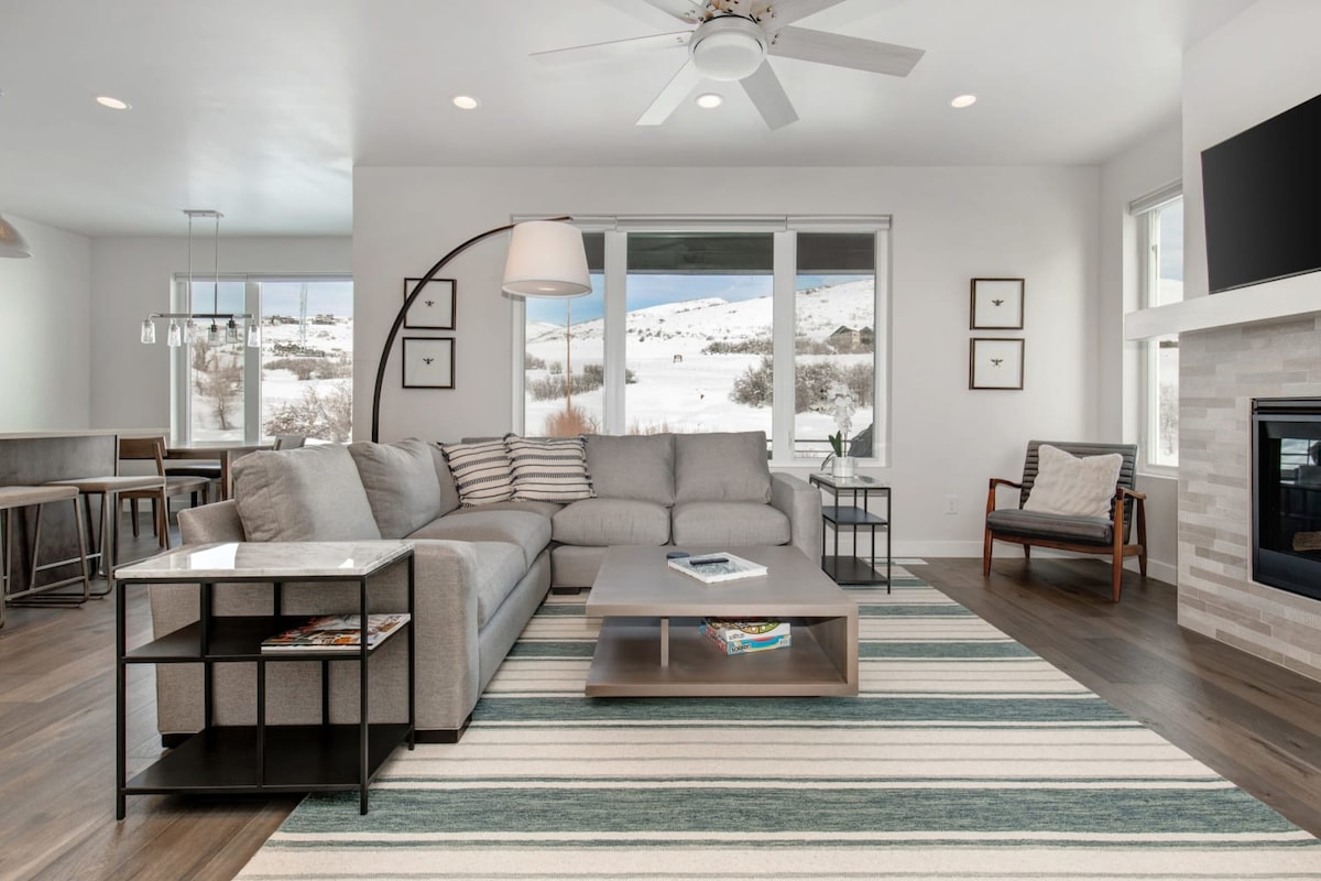 Large luxurious townhome with amazing views of Mt. Timpanogos! Scan QR for 3D ☞ Ping pong table ☞ Large Hot Tub ☞ Chef's kitchen ☞ Large balcony with Weber grill ☞ Garage parking for 2 cars ☞ High end mattresses, sheets and towels ☞ Sonos sound bar ☞ Great for multiple families and large groups ☞ 3 SMART TVs ☞ 5 min drive to the new Deer Valley East and Jordanelle Gondola Perfect location for year-round activities incl. skiing, hiking, biking, fishing, and more!