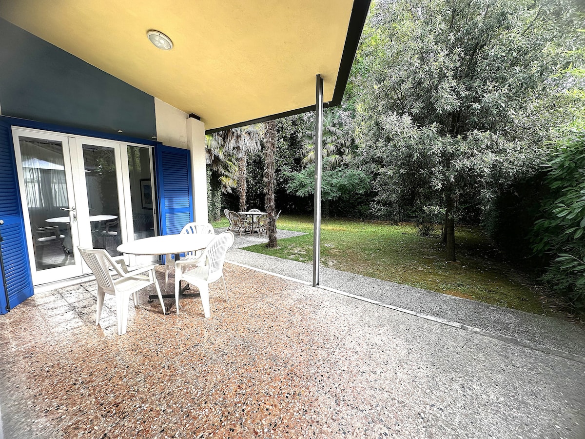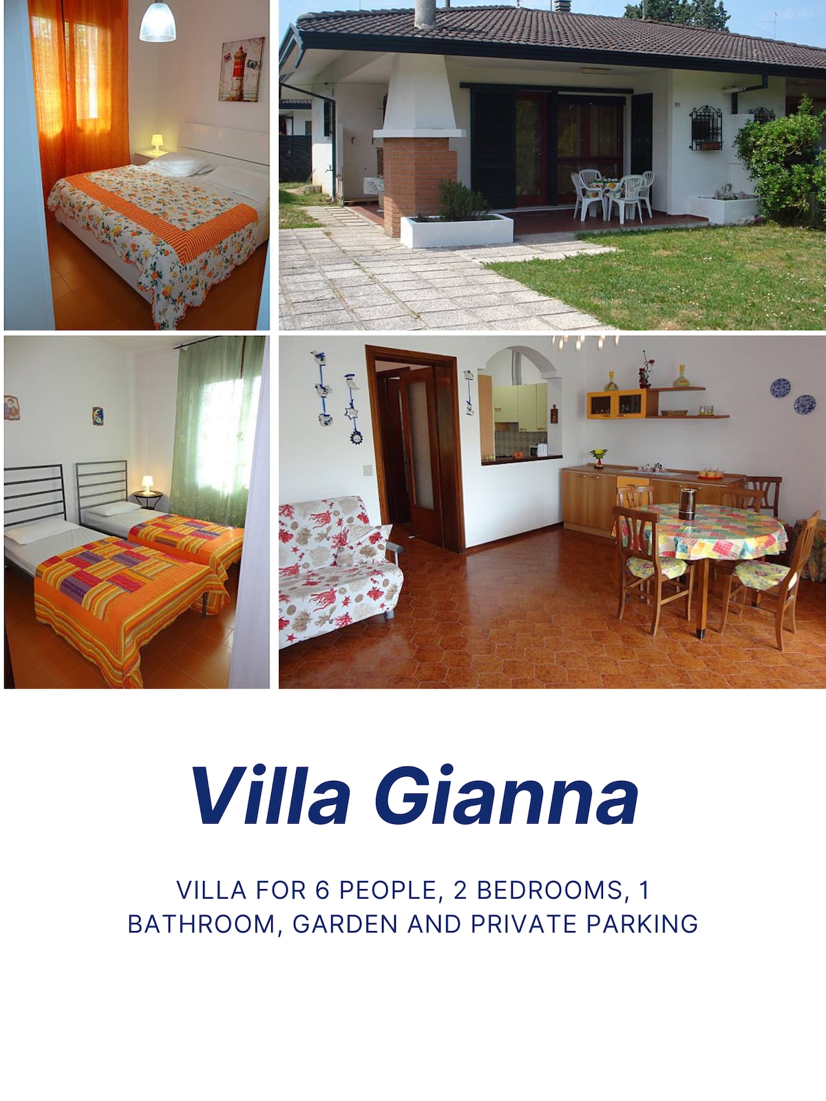 Small villa with private garden in a quiet area surrounded by greenery in Bibione Pineda, about 100 metres from the sea. Type A2 5+1: living room with sofa bed, kitchenette, 1 double bedroom, 1 bedroom with 2 single beds, 1 bedroom with single bed, bathroom with shower, spacious porch. With television, air conditioning, washing machine, dishwasher, safe, covered parking space, large enclosed garden.