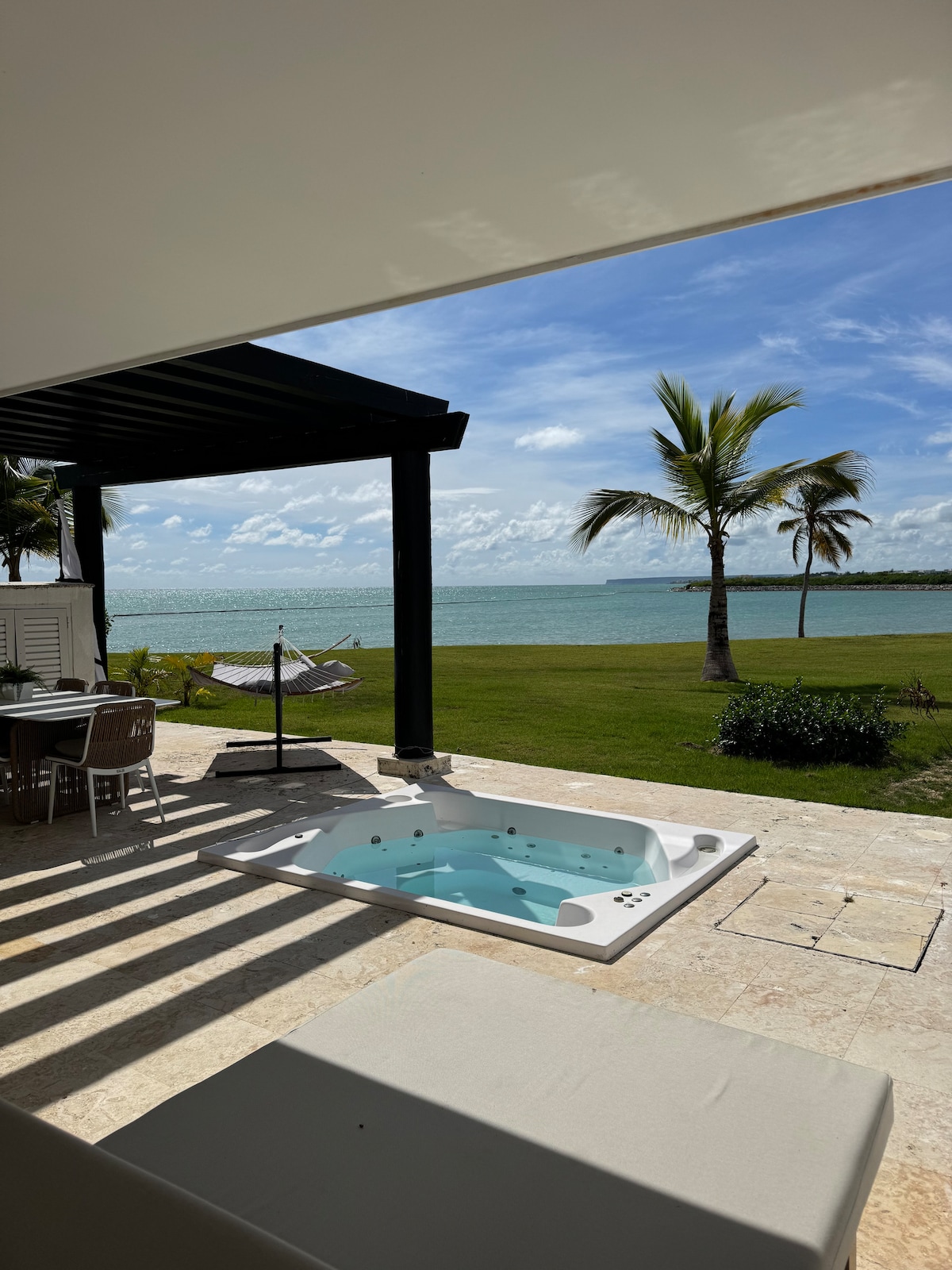 Seaside Bliss: your dream escape awaits! Immerse in luxury at our oceanfront studio with a fully equipped kitchenette. Just steps from the infinity pool and ocean, nestled next to Api Beach and Cap Cana Marina. Perfect for sunset strolls, a ride on an electric scooter, an ice cream or pizza stop, or a romantic dinner by the ocean at Maralia Restaurant! Your paradise found!