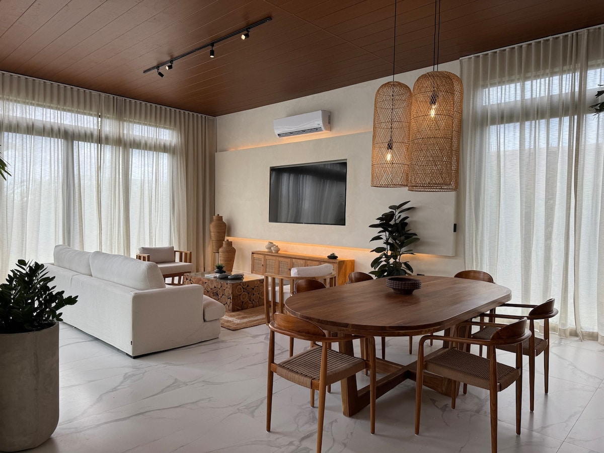 A Nice Villa in Punta Cana, PuntaCana Village is an excellent gated residential area, security 24/7. This modern villa with 3 decorated bedrooms with A/C, Smart TV and private bathroom. Family room with AC and TV plus a sofabed. Two complete kitchen, open terrace, patio with a pool and BBQ. Living and dining room with a nice view to the Pool and patio. Also to enjoy as closed area with A/C at an addittional cost as requested. The cost of the A/C in this area is 45 dollars per day.