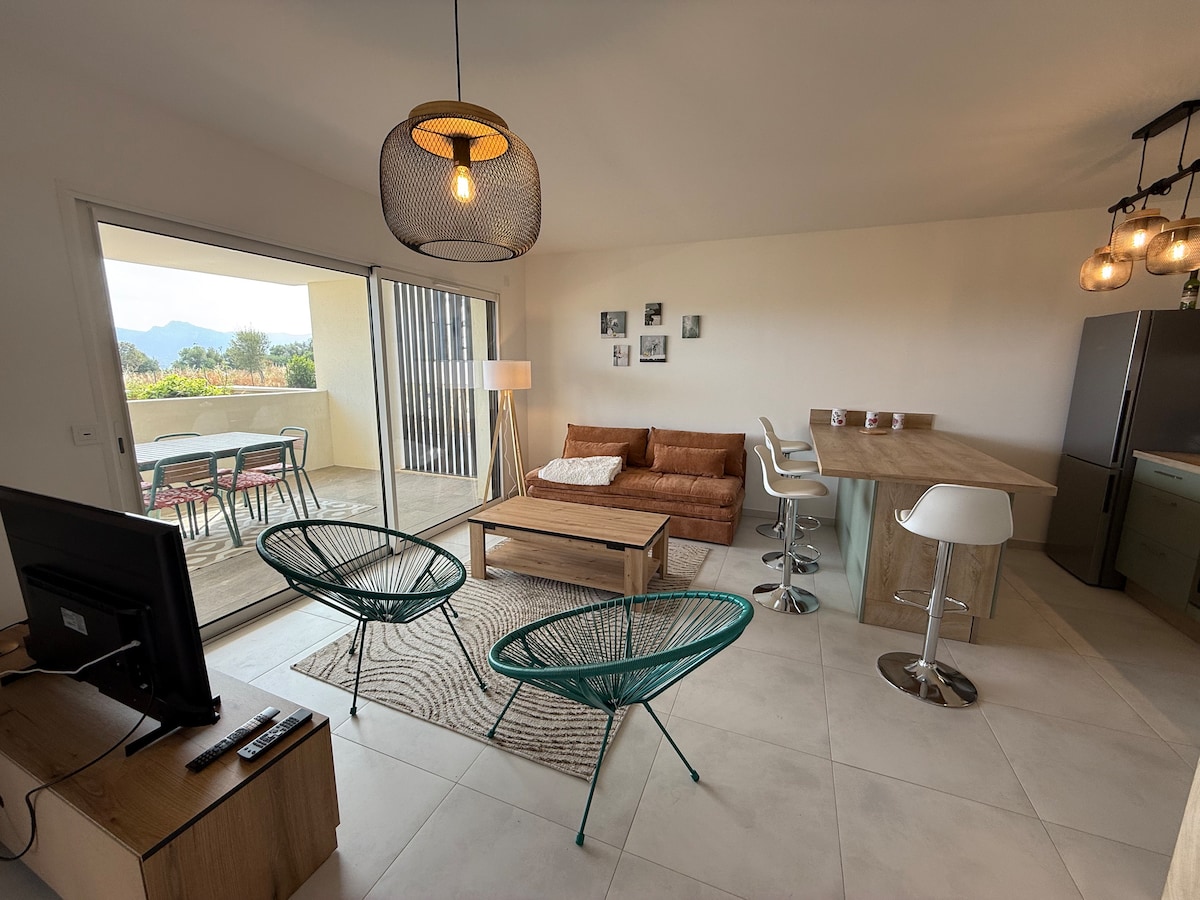 New apartment (residence of 2018), area of 57m2, terrace of 10 m2 with unique views of the sea and the mountains, in a preserved area, wooded, and a great tranquility. The island of Elba, very close is under your eyes. The city reached in a few minutes is less than 3 km from the apartment. Covered parking under the residence. We took care of the decoration of this apartment and its equipment so that you are at your ease. Air conditioned bedroom and living room.