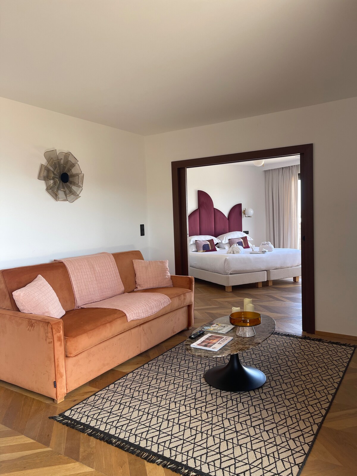 Découvrez notre somptueuse suite 4 étoiles en plein centre-ville, offrant une vue imprenable sur la mer. Cette grande suite, idéale pour 2 à 4 personnes, vous promet un séjour luxueux avec des équipements de première classe. Profitez de moments de détente dans votre propre jacuzzi privatif, et reposez-vous dans un cadre élégant et confortable. Le canapé lit est disponible en supplément au tarif de 50€ par nuits. La suite est équipé d’un mini bar, un four à micro onde, et d’une cave à vin.