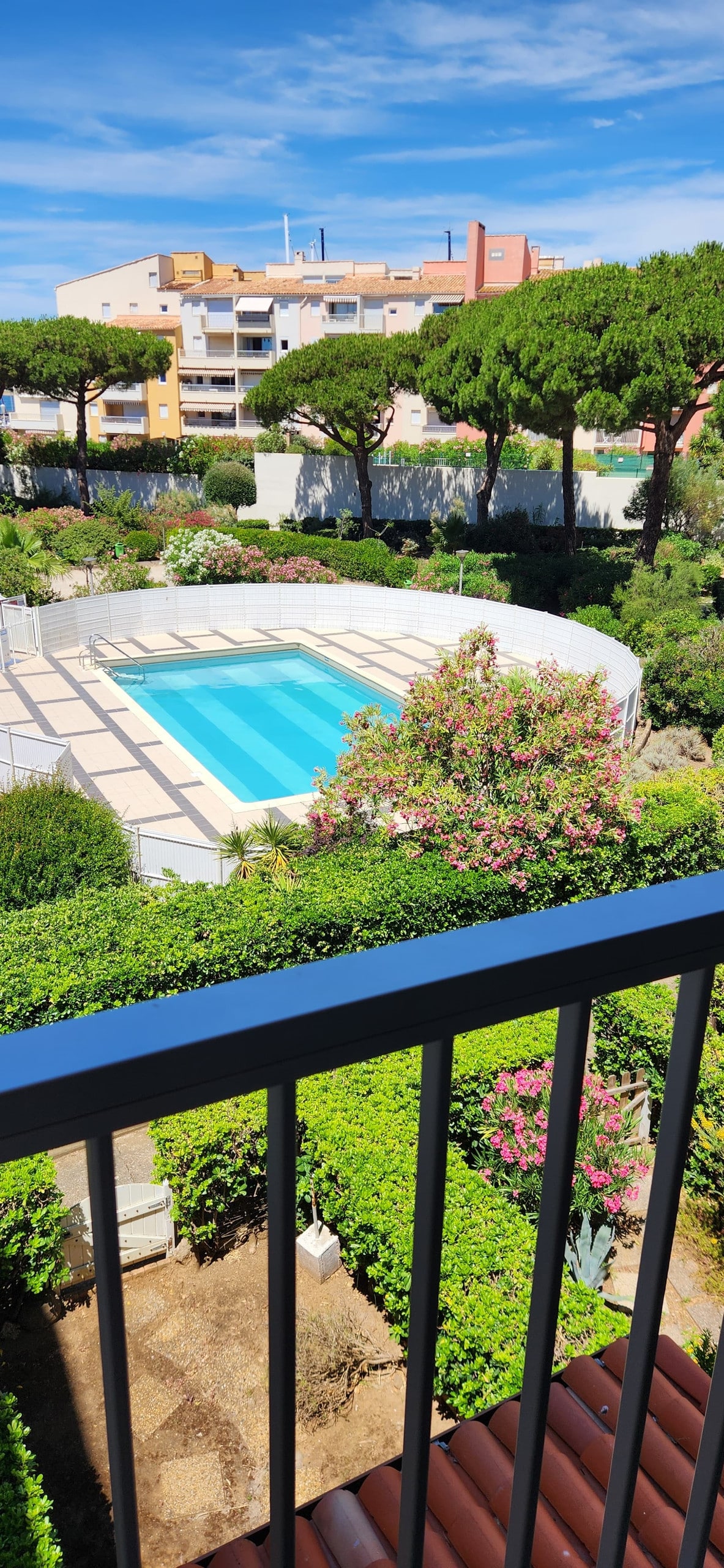 Apt pour six personnes (wifi, climatisation …) ; vues exceptionnelles depuis la terrasse de 14 m2 et solariums (transats) 🏖️ Grande piscine avec transats, pataugeoire, parking à l intérieur de la copropriété 🏖️ Vous pouvez tout faire sans voiture : plage, magasins, centre port, restaurants.. Vous avez accès à pied en 4 minutes à la plage de la conque, plagette Un arrêt de bus se situe au pied la résidence (gare Agde/résidence) 🌞Cliquez sur mon profil pour d autres annonces ; même résidence 🌞