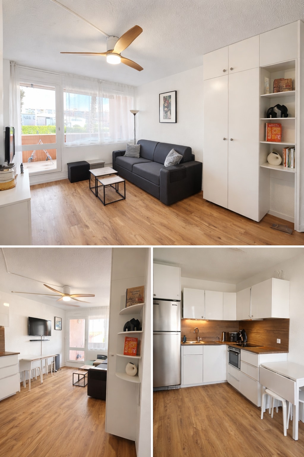Appartement refait à neuf Ce logement se situe à 2 min du centre du port du Cap d’Agde et de ses rues commerçantes piétonnes. Tout est faisable à pied ( plage, île des loisirs, casino, port…) Place de parking privative et sécurisée par caméra de surveillance et portail. Chambre lit 140x190, canapé cuir transformable en vrai lit 140x200. Cuisine équipée Pas de WIFI, Pas de CLIM NB : Nous ne fournissons plus les draps/ serviettes uniquement location Lit bébé et chaise haute sur demande