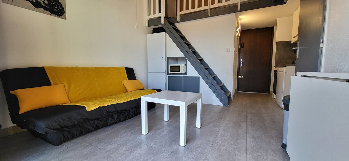 À seulement 150 m de la plage de Richelieu, proche des commerces et à 5 minutes du quartier de Rochelongue. Appartement de 26 m² au 1er étage d’une résidence sécurisée avec parking privatif. Séjour donnant sur une belle terrasse ensoleillée, coin cuisine entièrement rééquipé, une chambre avec lits superposés (3 couchages), une autre avec lit double, canapé convertible, salle d’eau avec WC. L’appartement est climatisé pour l’été et dispose d’un chauffage pour l’hiver.