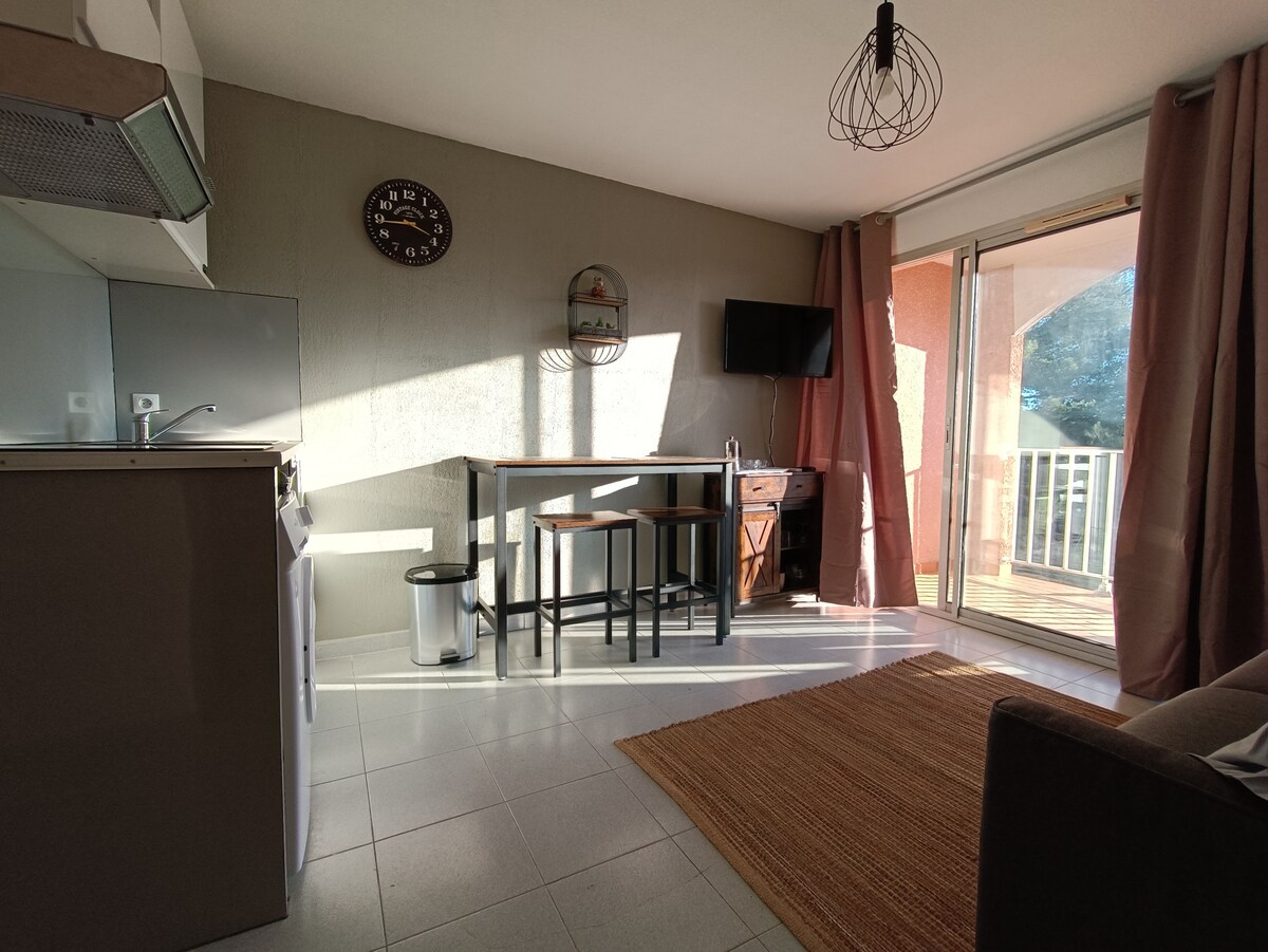 Appart 24 m2, rez de chaussée, terrasse 12 m2. Parking privé face à l'appart. Coin chambre (lit 140cms, canapé BZ dans le salon). Accès à la plage (200m) par chemin piétonnier. Tous commerces disponibles (supérette, tabac-journaux, boulangerie, boucherie, traiteur,..) ; un médecin est présent en saison, pharmacie 7/7j à l'entrée du village. Accès à l'appt par la terrasse (côté port), ou accès par l'entrée de l'immeuble (côté mer).
