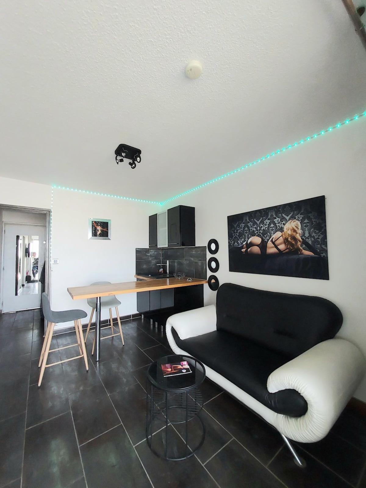 Dans le village naturiste, à Heliopolis GH, 2 ème étage, trés beau 2 p de 31 m2 climatisé. Wifi, parking privé. 1 chambre séparée( lit 160 avec miroir au plafond) avec son coin BDSM sur la loggia vue mer. 1 Grand séjour avec 1 terrasse vue mer. 1 Salle de bains. 1 Toilette séparé. 1 Cuisine équipée ( four, plaque,micro onde, frigidaire). Linge de maison fourni. Led lumineux. Idéalement situé au pied des commerces, du Glamour Beach et de la plage.