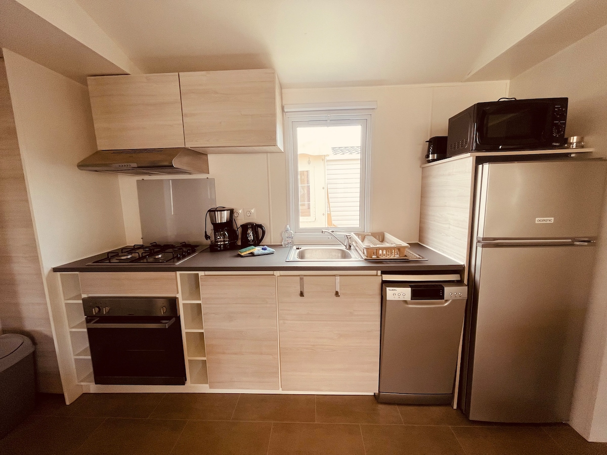 Découvrez notre charmant mobil-home climatisé 4 places, idéalement situé à quelques minutes de la mer ! Niché au cœur d'un camping familial, il offre un emplacement privilégié tout en garantissant calme et tranquillité. Il est fonctionnel et moderne avec tout l'équipement nécessaire pour des vacances réussies : coin cuisine, espace de vie convivial, chambres agréables et salle de bain moderne. Possibilité de louer du vendredi au dimanche hors saison, nous contacter !