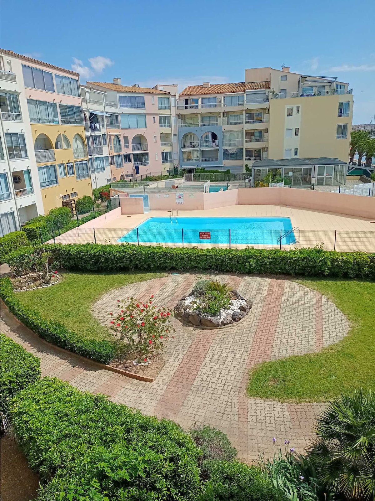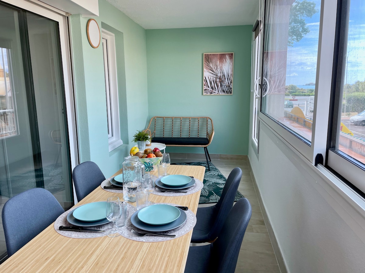 Apartment 5 people (separate sleeping for children) Close to all amenities, everything is on foot: Beaches (conch, plagette, mole) Access center port (shops, entertainment, restaurant) Air conditioning - Internet - wifi (box) - Secure parking Pool with loungers (two pools - one for the little ones) The apartment is fully equipped (large fridge-freezer, dishwasher, washing machine, connected TV, sofa. Open terrace overlooking the boats (umbrella, outdoor table and chairs)