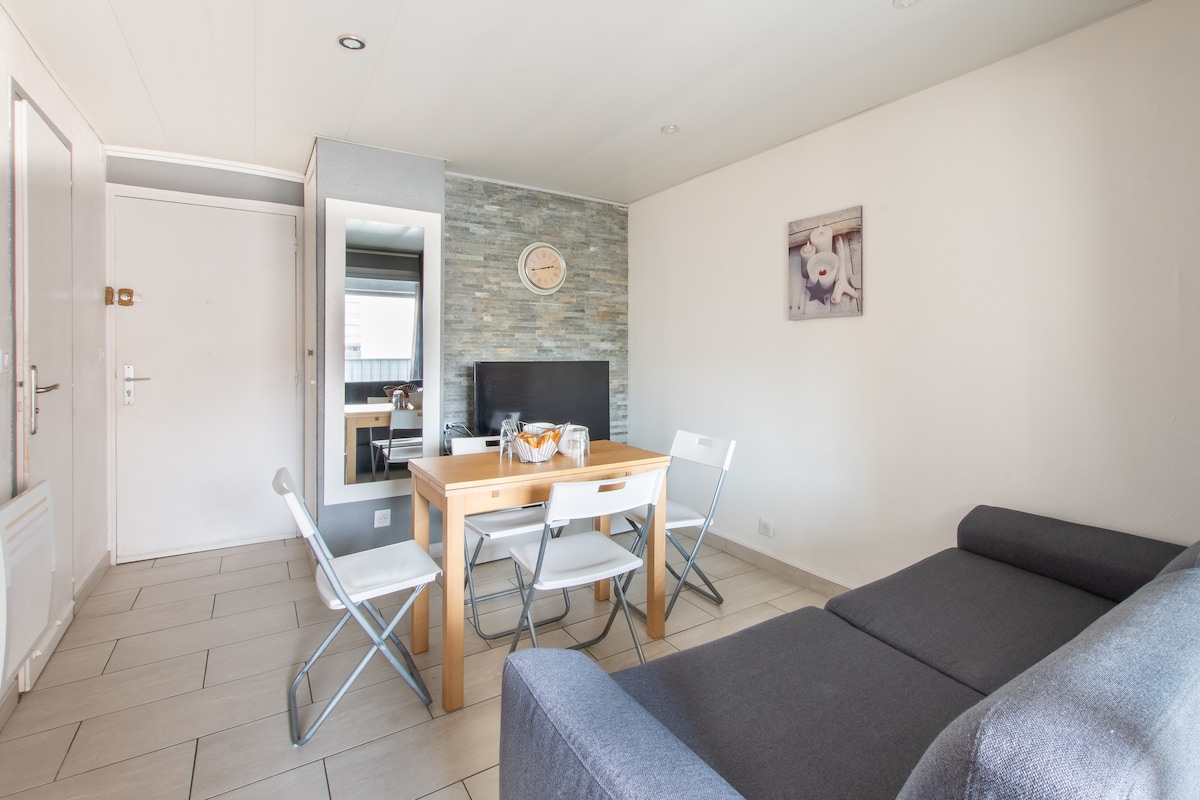 This charming air-conditioned one bedroom apartment is located at the second floor of the building and is across les Halles de Béziers, a bustling farmer's market offering some of the best culinary experiences of the region. You will enjoy the lively neighbordhood with tourist landmarks including the majestic Saint Nazaire cathedral, a large variety of restaurants and shopping (farmer's market, supermarket, shopping streets) with an underground parking 150 meters away.