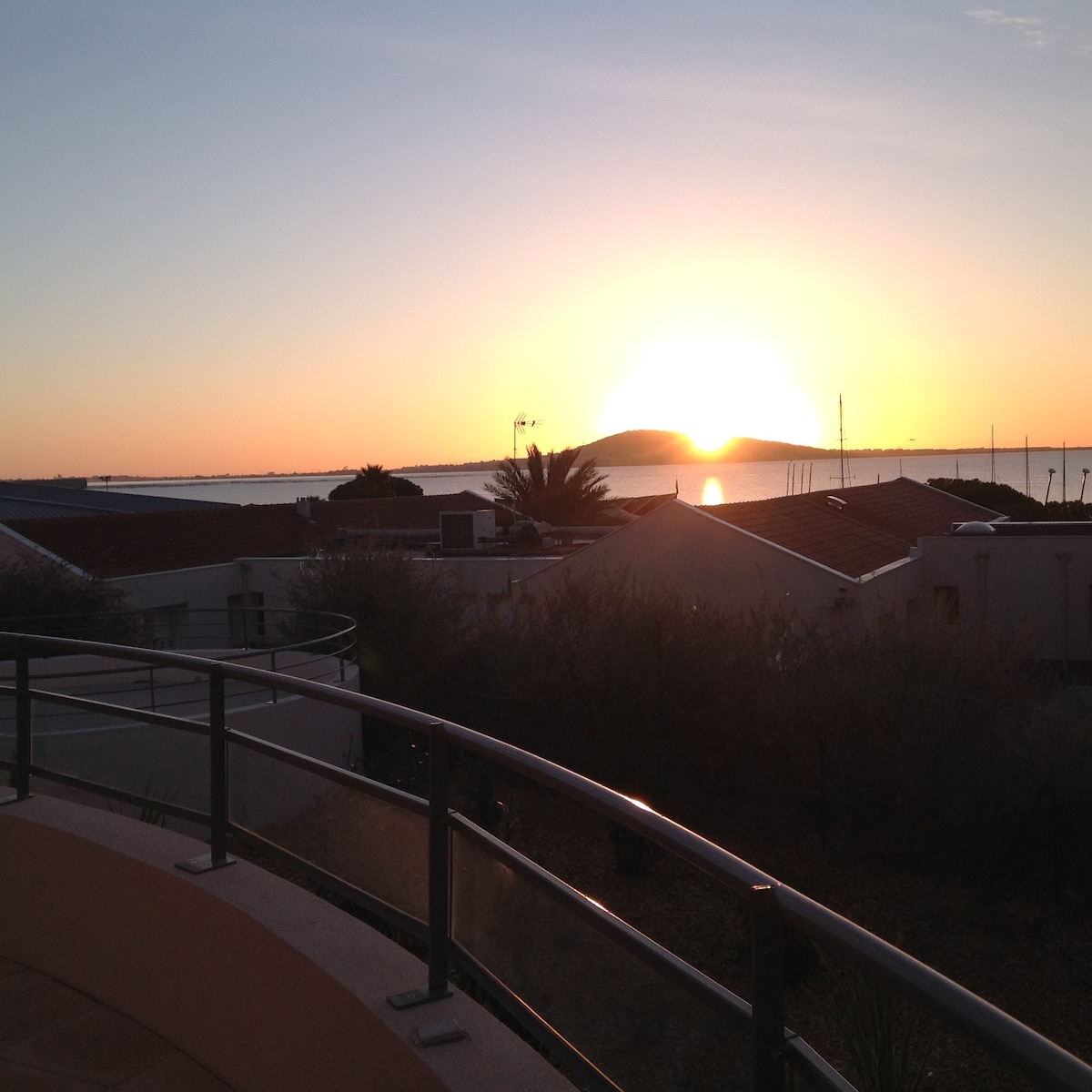 studio de 25m2 Au rez de chaussée. vue à couper le souffle. Emplacement unique à Mèze" côté mer, côté voiles" en Front de mer immédiat (à 3 mètres de l'eau)tout équipé,Lave-linge, lave vaisselle, four micro ondes , frigo , cellier, climatisation, chauffage,TV grand écran plat, WIFI offerte mezzanine (H:1m20) avec lit en 140, rangements placards muraux, canapé convertible en 140 ( rapido Neuf)terrasse fleurie A PIEDS :A 5mins de tous les commerces et du port, plage est à une 10aine de mètres