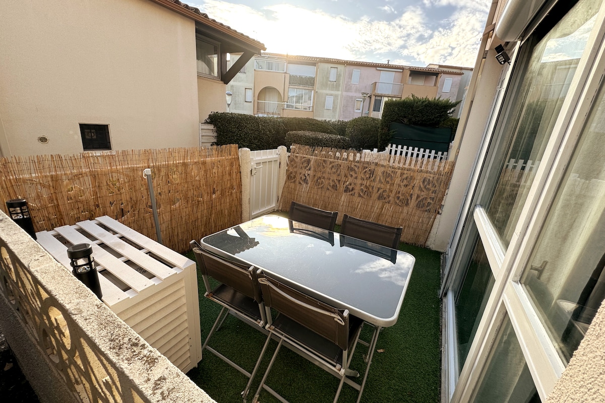 Appartement en rez-de-chaussée, à 10 mètres de la plage Cet appartement plein sud de 42 m², situé en rez-de-chaussée, vous accueille dans un cadre confortable. Entièrement climatisé, il bénéficie d’une belle luminosité naturelle tout au long de la journée. Vous profiterez également d’un grand jardin privatif de 60 m², idéal pour vos moments de détente . À seulement 10 mètres de la plage, c’est l’emplacement parfait pour des vacances les pieds dans l’eau, sans avoir besoin de voiture