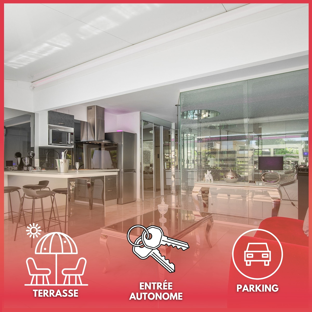 It doesn’t get any closer: Mademoiselle Conciergerie presents Villa Roquille, fully renovated in 2025, in a private, secure Cap d’Agde residence. Terrace gate with direct beach access; upstairs master with sea view from the bed; second suite on the ground floor. Large living room with island, 30 m² terrace, summer kitchen with plancha & BBQ. 65" Samsung Frame TV + Sonos.