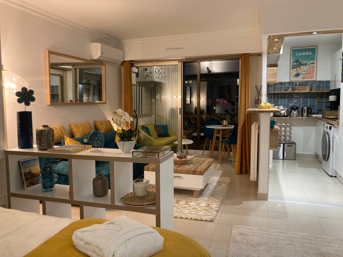 Appartement idéal pour deux personnes, situé à l’orée du Cap d’Antibes, nombreux restaurants et bars sont accessible à pied, ainsi que les plages privées ou publiques à 150 m.accès facile à tous les sites et commodités depuis ce logement central. L'appartement à été rénové avec goût, de manière qualitative afin de vous faire bénéficier d'un confort maximum. vous pourrez prendre le petit déjeuner ou apéritifs avec vue sur la pinède de Juan les Pins.