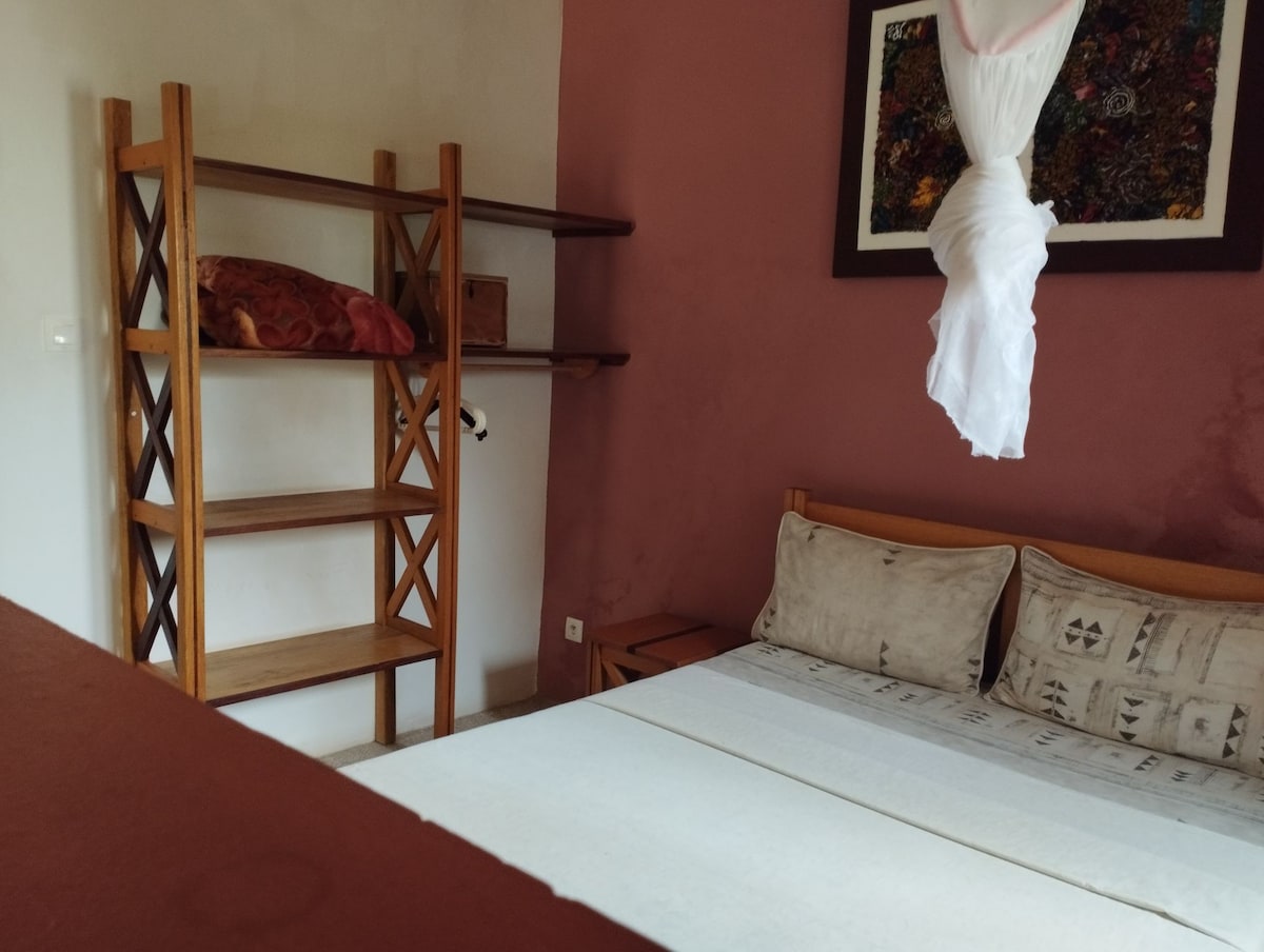 Maison typiquement Sénégalaise au bord de la plage, située dans un coin tranquille, dans une nature verdoyante. La propriété se compose de deux chambres dans la maisons et de deux bungalows, une piscine, une cuisine, une salle de séjour et un accès privé à la plage. C'est un lieu paisible et de détente où nous serons heureux de vous accueillir et de vous faire découvrir la région: la Casamance.