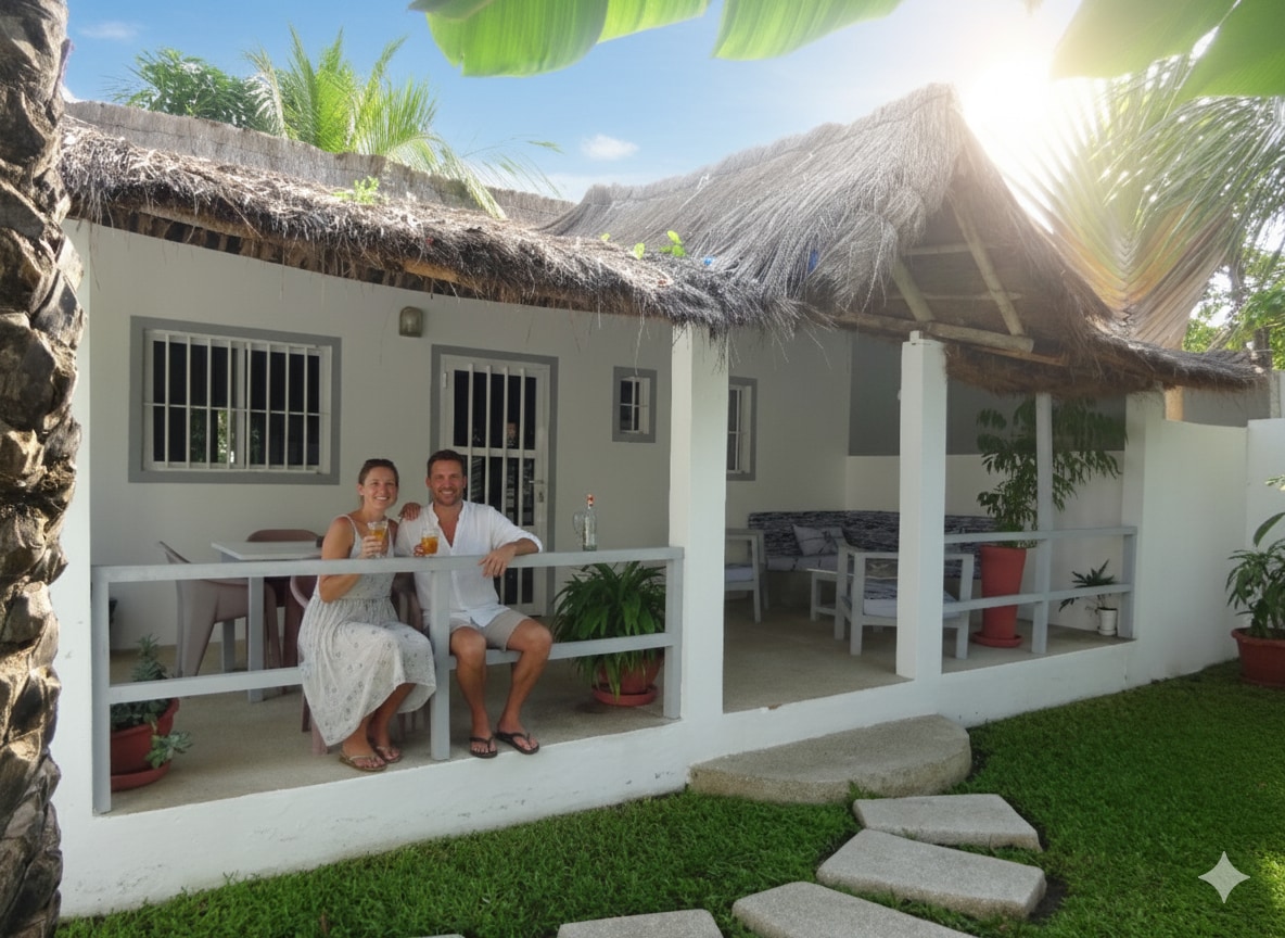 Maison de charme avec climatisation dans une résidence avec piscine lagon de 14 mx 7 m (cascade, plantes et rochers paysagés). Au calme et idéalement placée (proche de la route principale , océan à 700 mètres), la résidence compte 4 maisons privatives. Indépendante avec son jardin et sa terrasse couverte, chaque maison est entièrement équipée et possède tout le confort nécessaire. Le petit-déjeuner est inclus dans la réservation. Service de 7h00 à 11h00.