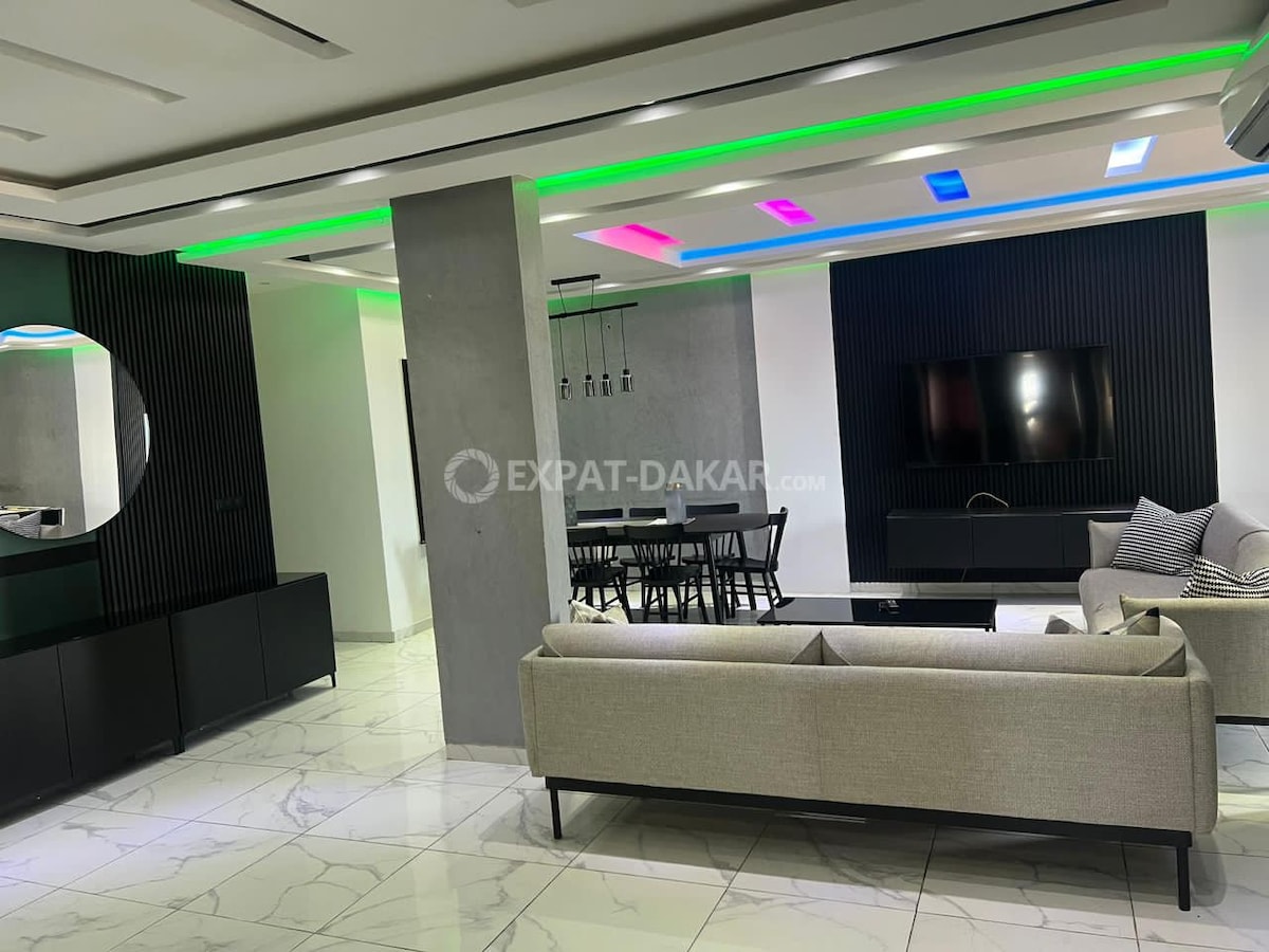 Duplex rooftop lumineux 326 m2 au 7ème étage Ngor Virage avec magnifique vue Océan et terrasse privative au 8ème avec belle table et jacuzzi non chauffé pour se détendre et profiter de la belle vue Grand salon, 3 suites parentales, 1 chambre avec lit double et 2 chambres d’appoint & 2 WC visiteurs 2 lits parapluie disponibles et chaise bébé Femme de ménage du lundi au vendredi Buanderie machine à laver Espace bureau Literie internet fibre Gardien Ascenseur Place de parking privée souterrain