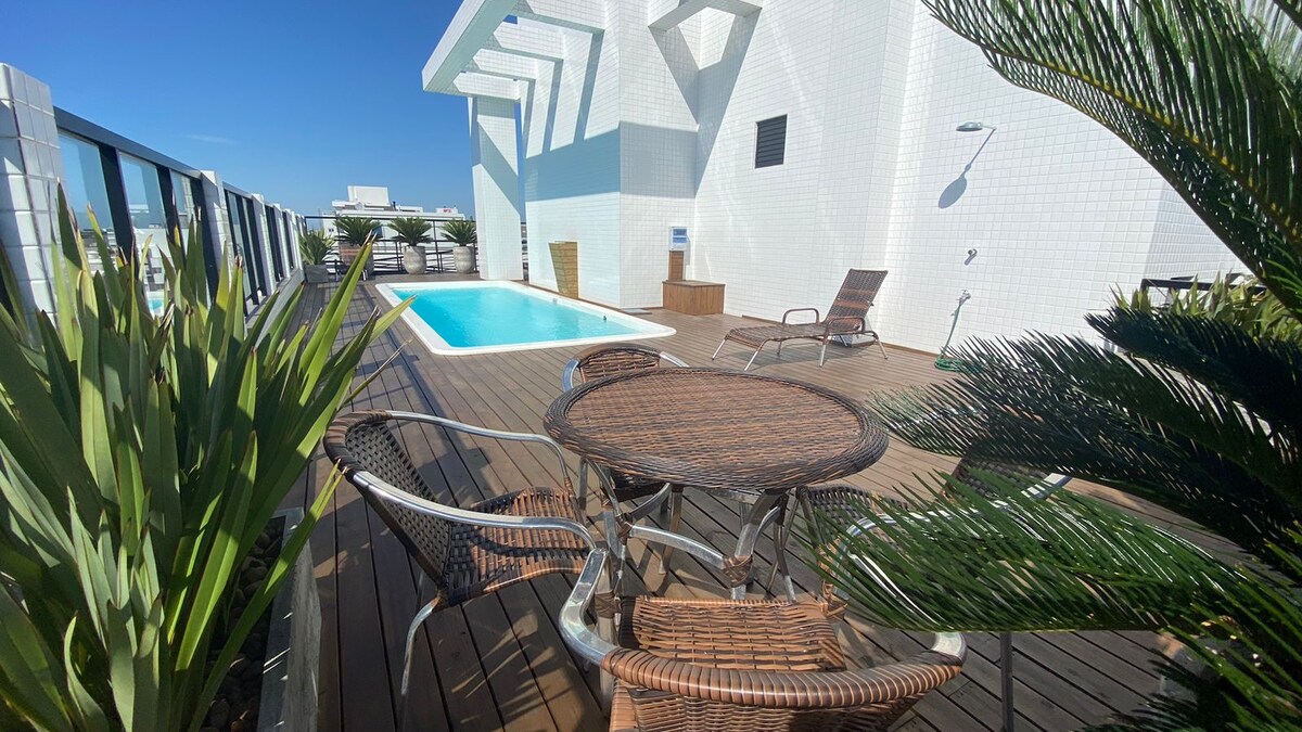 Este lugar especial e único fica perto de tudo e é ideal para planejar sua visita, tem uma vista incrível é super equipado, fica a 300 mts do mar e tem uma praça maravilhosa na quadra ao lado é simplesmente perfeito além de contar com artes exclusivas e temáticas nas paredes é realmente único ❤️! ANTEÇÃO: reservas de Natal, Ano Novo e Carnaval o mínimo são 5 diárias!