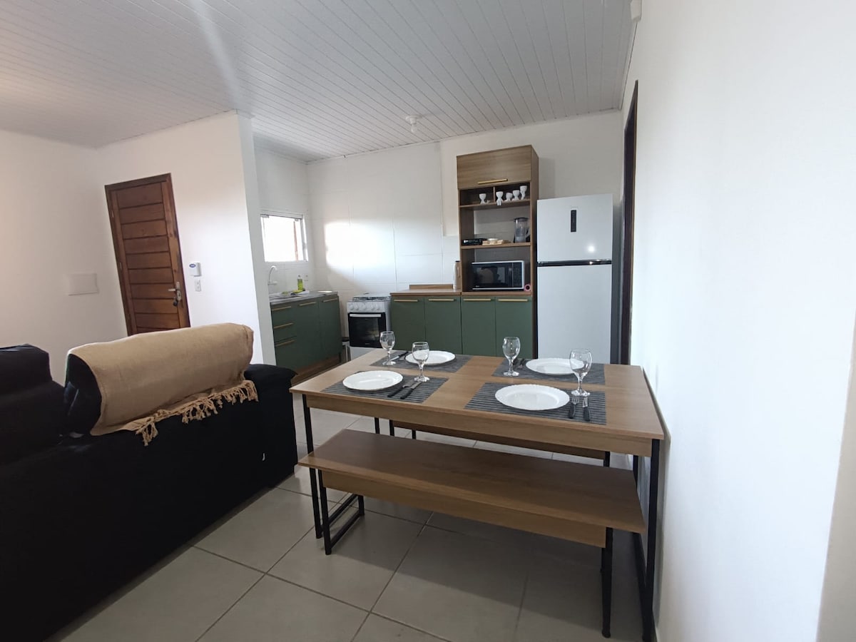 Casa aconchegante a 500m do mar, wifi, TV Android, muito espaço na praia (até para jogar bocha), salva-vidas, local tranquilo, linda orla com pistas de caminhadas pedaladas e patinação, pequenas ilhas para bate-papo e chimarrão, quadras de volei, pracinha para crianças. * Trazer toalhas e roupas de cama (menos travesseiros). Relaxe com a família nesta acomodação tranquila.