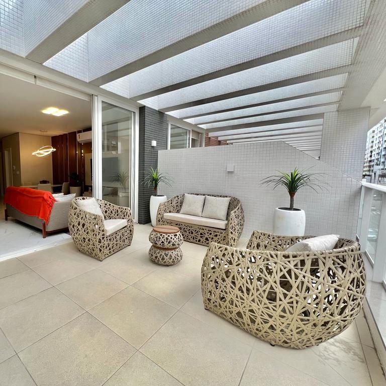 Lindo Apto 1 dormitório com cama de casal e ar split, sacada separada com churrasqueira e vista lateral eterna para o mar, ampla sala de estar e jantar com ventilador teto+TV smart, imóvel bem iluminado e arejado, vaga coberta(melhor box do prédio) sem precisar manobrar( portão com fechamento automático em 30seg).Ed. com elevador, hall com 2 portas de segurança. Localização nobre na BEIRA-MAR, entre duas magníficas praças Avezon e Flavio Boianoviski, a 5 minutos do centro e comércios.