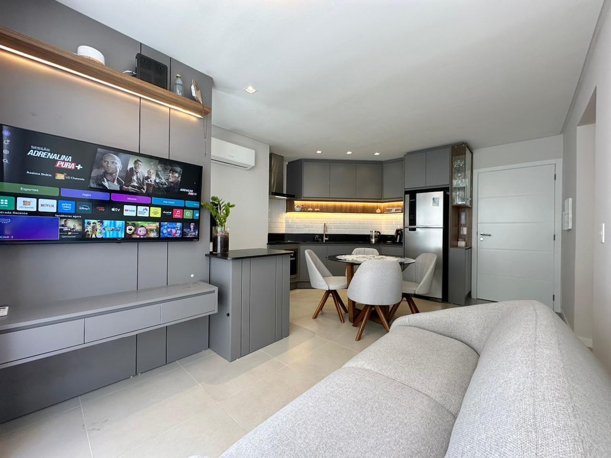 Relaxe neste espaço calmo e cheio de estilo, apartamento de 1 dormitorio com banheiro e estacionamento , completo não precisando trazer nada , wifi , cafeteira tvs smarts, maquina lava e seca , cama queem , toalhas e roupa de cama etc... Maravilhoso apartamento na Navegantes, com terraço no predio com vista mar , serra e lago para aquele chimarão do dia. Com academia e Rooftop liberada. Não !!!!! Permitido reserva e nem o uso do SPA e Sala de Festas para inquelinos !!!!