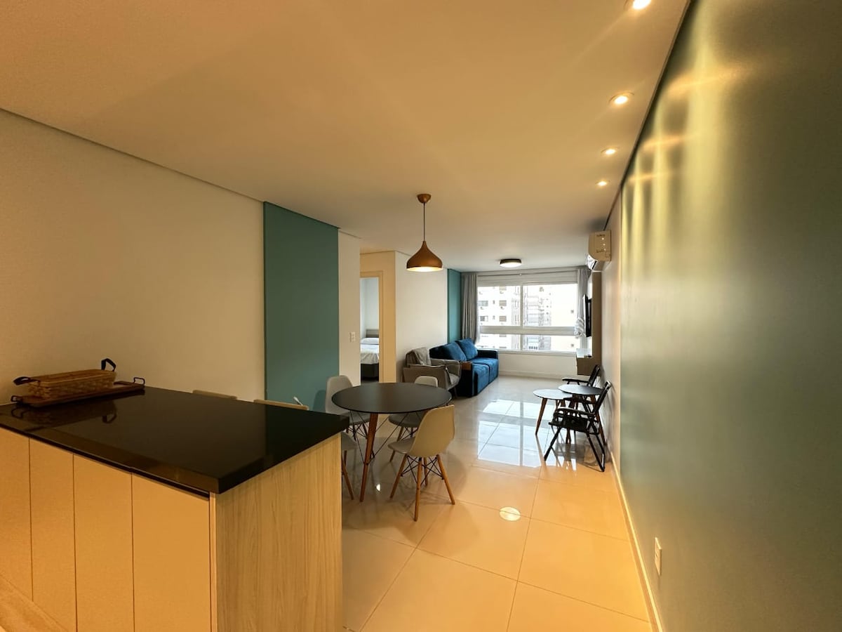Apartamento em zona nobre de capão da canoa , prédio alto padrão com estrutura ímpar, PISCINA TÉRMICA AQUECIDA, salão de jogos (sinuca, ping pong), sala de cinema, brinquedoteca e 2 quadras do mar, portaria 24hrs... O apartamento conta com 2 quartos, 2 camas casal, ar condicionado frio/quente na sala e em um dos quartos, tv smart 60 polegadas na sala, Wi-Fi, churrasqueira no apartamento e box interno para carro. Venha viver momentos no melhor do litoral!!!