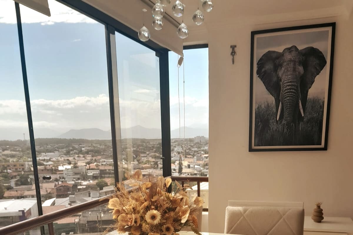 Apartamento 130 m² (privado) + terraço de 25m²(compartilhado) 2 dormitórios (sendo 1 Suíte). Suíte Master c/ closet, 20 m² + Banheiro com banheira de hidromassagem dupla. Outro Dormitorio é um Studio de Música com Tratamento Acústico, acomoda um casal, com uma cama escondida. Living com 55 m², tem um espaço Fitness com alteres, elásticos e equipamento para prática de Boxe. Churrasqueira fica no salão de Festas. Solicitar junto ao anfitrião. Ou disponibiliza churrasqueira portátil no terraço