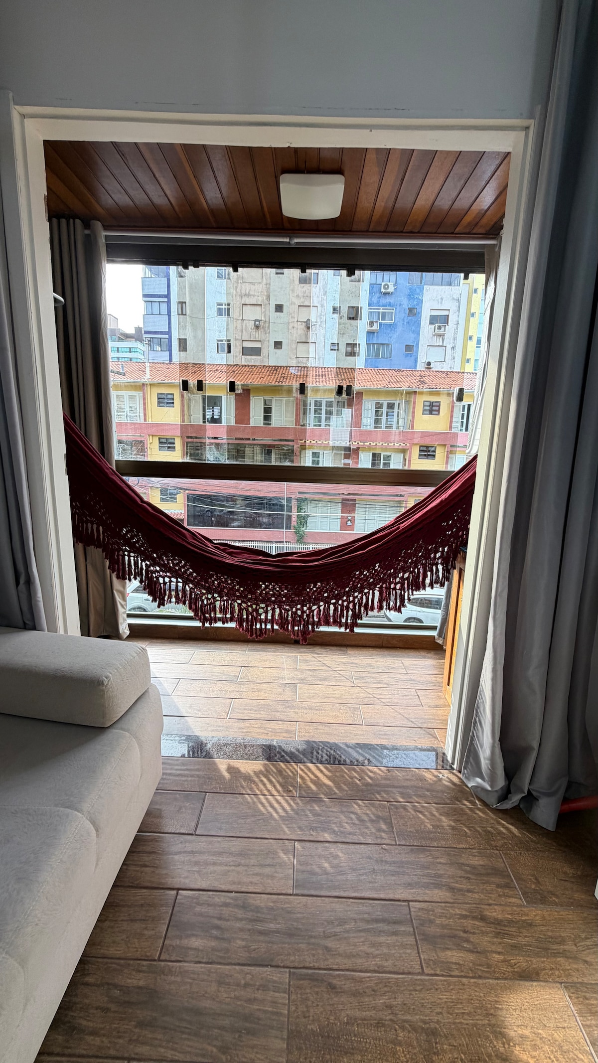 Apartamento de 1 quarto, bem no centro. Ideal para casais, mas comporta bem até 4 pessoas. Ao lado de restaurantes e mercados, não necessita de carro para nada. Fica a 2 quadras do mar e ao lado de linda praça arborizada. Sacada no quarto, de frente para a Rua Sepé. Portão eletrônico e garagem privada. Churrasqueira coletiva no térreo. Bem arejado, com ventilação cruzada. Ventiladores no quarto e na sala. Apartamento antigo, mas bem preservado. Fica no 4º andar e não possui elevador.