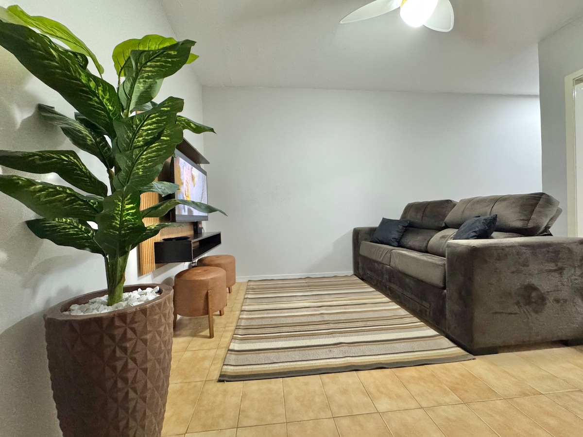 Apartamento recém mobiliado com 2 quartos e 1 suíte para pessoas exigentes, próximo á avenida principal no centro. Cozinha completa, Tv's e ar condicionados em todos os cômodos, mesa de jantar com 6 lugares, espaço de lavanderia, churrasqueira, com garagem para 1 carro, Wi-fi. Próximo a supermercados, padaria, farmácia e posto de combustível. Preço pode mudar conforme a data escolhida, aberto a consultas.