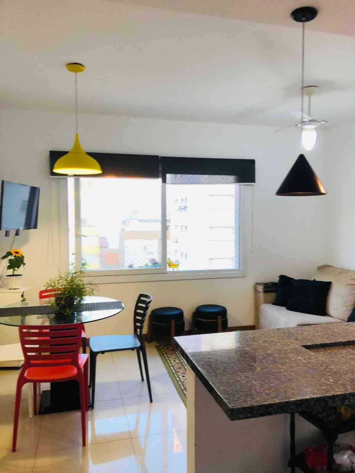 Apartamento de 1 quarto, bem no centro. Ideal para casais, mas comporta bem até 4 pessoas. Ao lado de restaurantes e mercados, não necessita de carro para nada. Fica a 2 quadras do mar e ao lado de linda praça arborizada. Sacada no quarto, de frente para a Rua Sepé. Portão eletrônico e garagem privada. Churrasqueira coletiva no térreo. Bem arejado, com ventilação cruzada. Ventiladores no quarto e na sala. Apartamento antigo, mas bem preservado. Fica no 4º andar e não possui elevador.