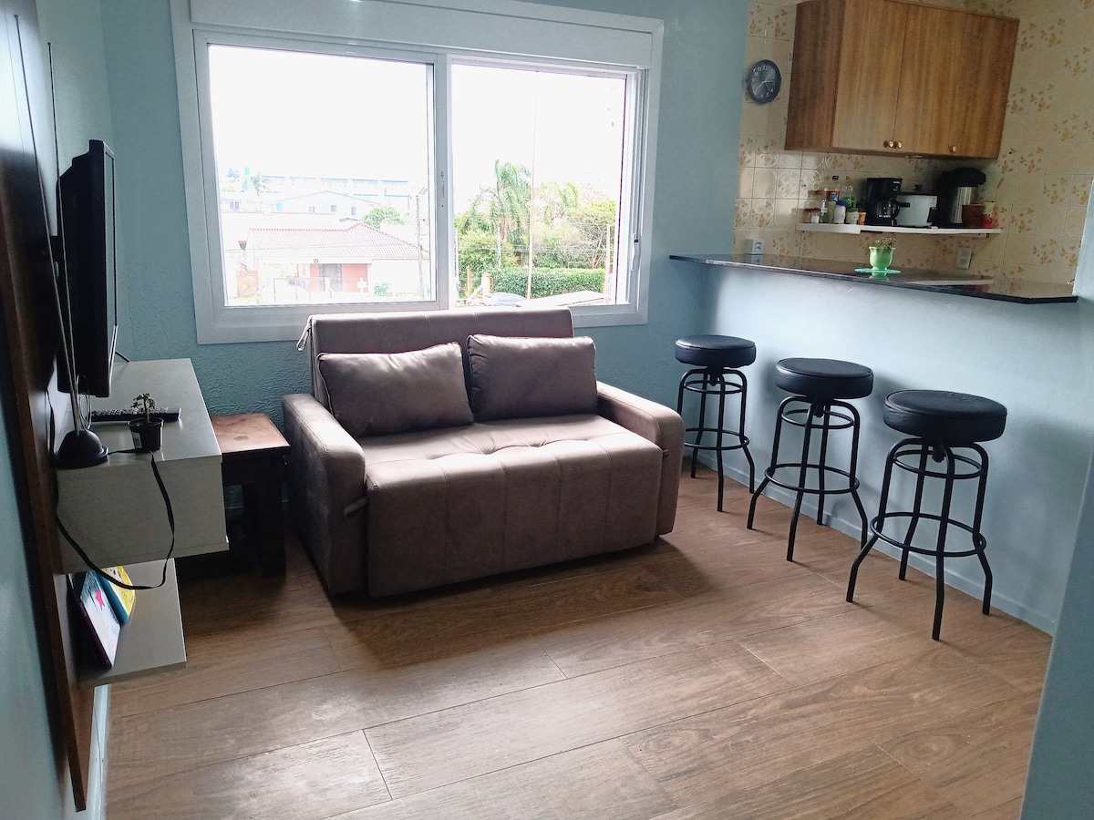 Capão da Canoa! Poucos metros do mar! Amplo Ap 01 dormitório, banho social, churrasqueira, sala, cozinha, área de serviço! Sofá cama e colchão de solteiro extra! Dormitório com ar-condicionado Na praia mais linda do litoral gaúcho Capão da Canoa, conforto e segurança juntos em um só lugar! Para vocês curtir o verão da melhor forma, venha para a praia!