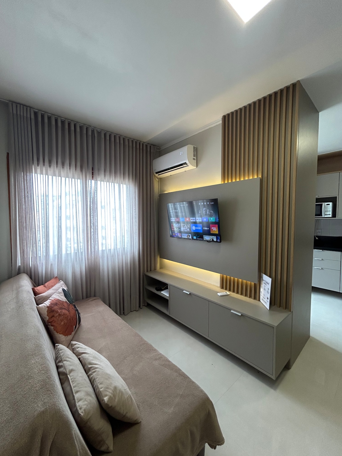 Relaxe neste lugar único e tranquilo, com uma vista de tirar o fôlego! Apartamento compacto, máximo 4 pessoas, ideal para casal com criança. Apartamento composto por 1 quarto e sofá cama na sala. Todo climatizado (quente e frio), com ar na sala e no quarto. Smart tv na sala e no quarto! Tem vaga de garagem! Oferecemos 4 cadeiras de praia e 1 guarda sol! Roupas de cama são fornecidas! NÃO fornecemos toalhas. Informamos que as janelas NÃO POSSUEM rede de proteção. Cuidado com crianças.