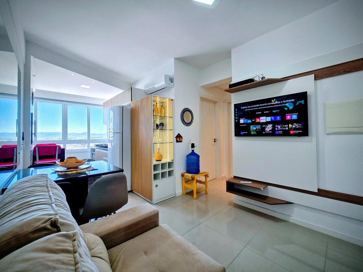 Maravilhoso apartamento na beira mar, próximo dos principais pontos da cidade, ideal para suas férias. Situado no 5° andar onde todos os cômodos possuem vista lateral para o mar, ar split e televisor smart. Imóvel mobiliado pensando em seu conforto e na praticidade durante sua estadia. Possui sala de jantar e sala de estar integradas, churrasqueira, máquina lava e seca, fogão, geladeira, microondas, sanduicheira, liquidificador, secador de cabelos, ferro de passar roupas, utensilios completos.