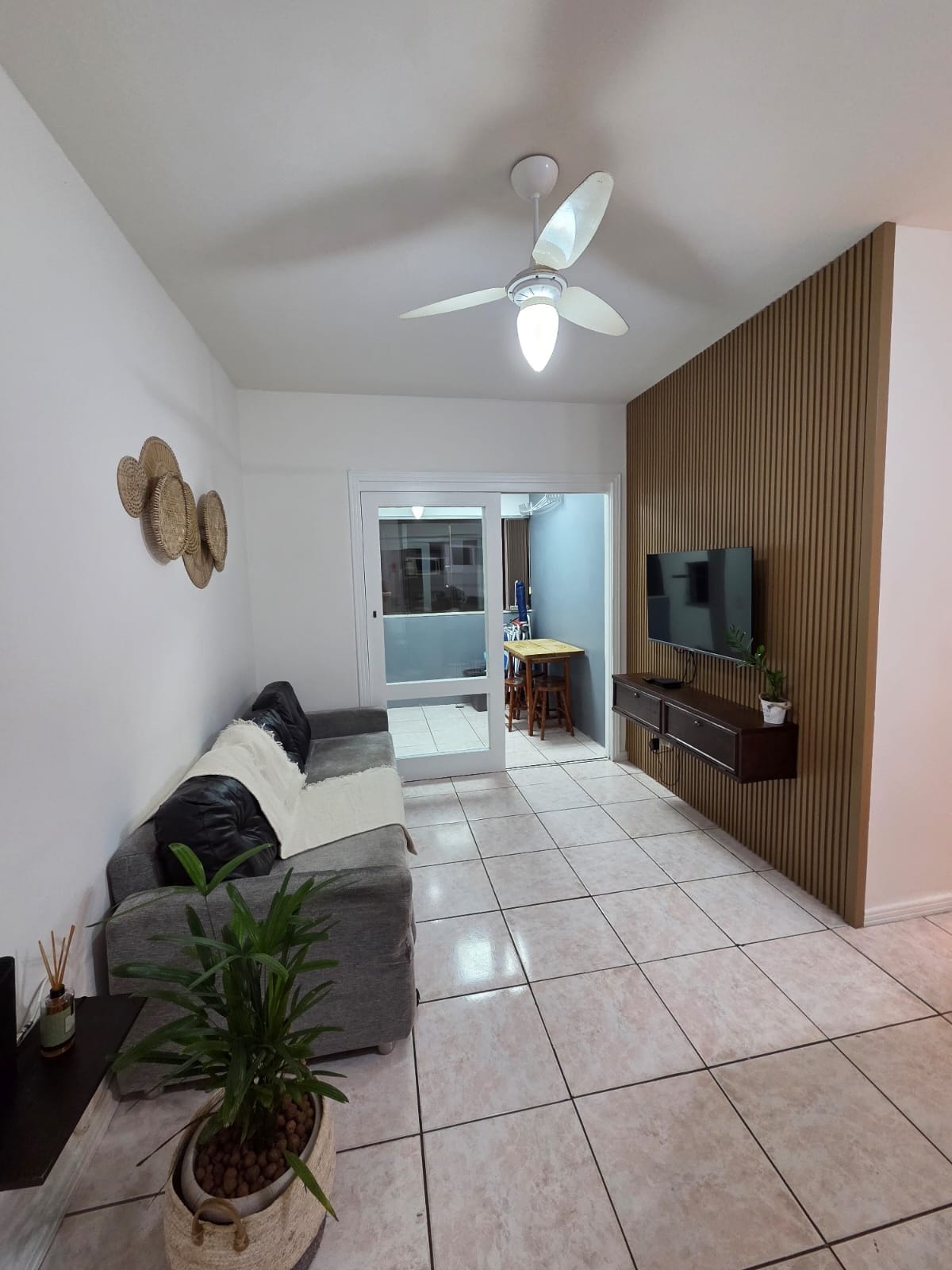 Apartamento composto por 3 quartos, sendo 1 suíte. 1 banheiro social 2 quartos com ar condicionado, cama de casal e tv smart com net combo 1 quarto sem ar sem tv e com cama casal. Sala com ar condicionado, churrasqueira, forno elétrico, microondas. Máquina de lavar lava e seca Apartamento totalmente mobiliado 4 quadras do mar, aproximadamente 200m. APARTAMENTO SEM DEFEITOS, Perfeito para locação de veraneio. Acomoda até 8 pessoas (contabilizando com sofá da sala) Box privativo no próprio prédio