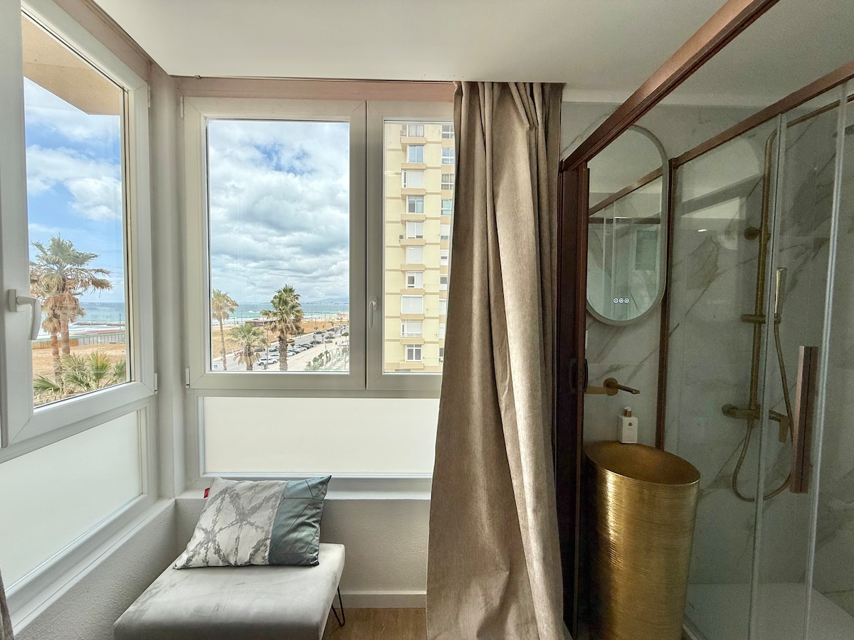 Apartamento reconstruído por arquitecto, excelente privacidade, exposição solar, com wifi, e praia a 150m. 1 suite com SPA e banho turco com aromaterapia. 1 suíte com terraço com vista mar, tela de projeção de cinema. Sala com vista de mar, rio, e terraço, onde poderá disfrutar de uma zona de estar e de um barbecue com grelha em ferro forjado. Perto de restaurantes, cafés e supermercado, e estação de comboio. Ar condicionado e piso aquecido em todas as áreas, TV 4K e box independente por suíte.