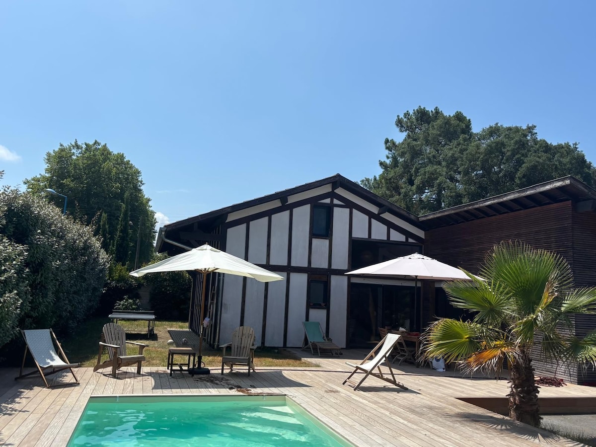 Perfect Architect's villa, all comfort, fully air-conditioned for a soothing stay. Ideal for vacations with family or friends. Come and discover this luminous high-end cabin, nestled in the middle of the Landes pines. The warm living space is very appreciated with its large bay windows overlooking the terraces, the heated pool all year round, the sauna and the forest. *** The advertised price includes the price of the house for the chosen period as well as the cleaning at the end of the stay