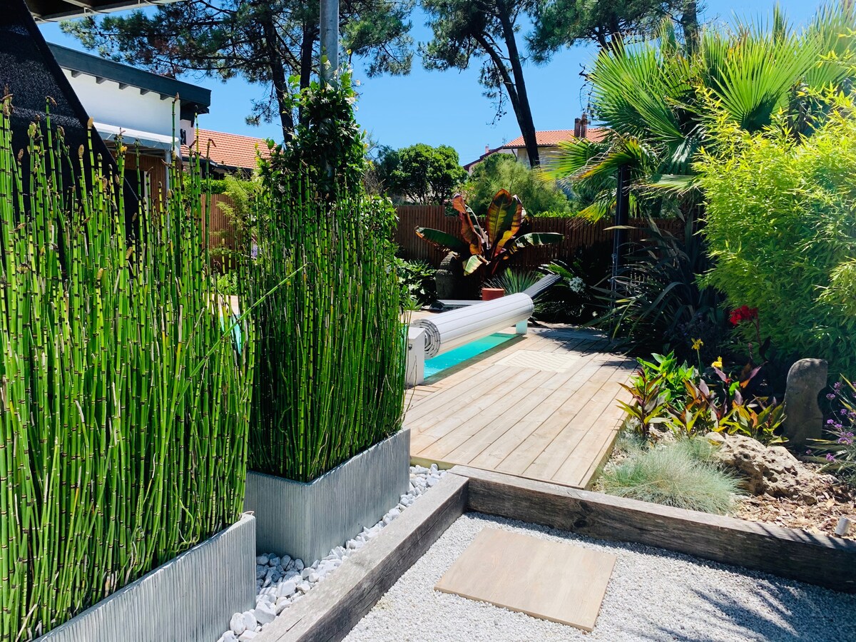 Ce logement paisible offre un séjour détente pour toute la famille, proche de la plage et du centre-ville de Capbreton. Vous profiterez d'un bungalow rénové entièrement et de sa piscine chauffée. Vous pourrez vous reposer au choix sur votre terrasse privée ou dans le jardin à l'ombre des pins maritimes et des chênes lièges. C'est la location de vacances idéale pour laisser la voiture le temps de vacances et tout faire à vélo ou à pied! A noter: notre maison se situe juste à côté des bungalows.