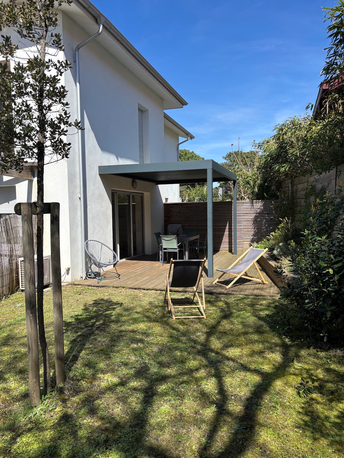 Maison neuve entourée de forêt à côté de la piste cyclable et plages de la côte landaise Elle se compose d’un salon avec cuisine américaine, de 3 chambres dont 1 suite parentale avec sdb et wc , pour finir une autre sdb et wc indépendant . Fibre internet 🛜 Pour l’extérieur une piscine pleins sud de 4 sur 8.5 m chauffée de avril au 11 novembre avec jardin paysager et 110m2 de terrasse en bois . Plage et golf de Moliets et maa à 10mn Vieux boucau 15mn Hossegor 28mn . Biarritz 50mn